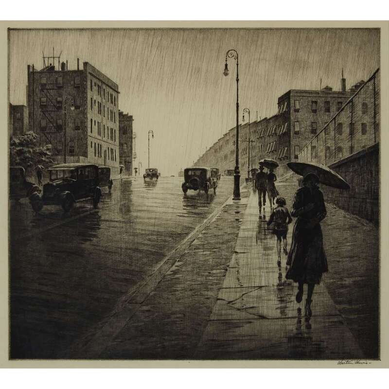 MARTIN LEWIS (AMERICAN 1881-1962) "RAINY DAY, QUEENS"