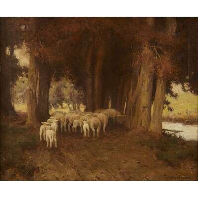 EANGER IRVING COUSE (AMERICAN 1866-1936) SHEEP IN THE WOODS