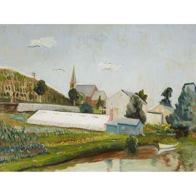 WERNER DREWES (AMERICAN/GERMAN 1899-1985) GREENHOUSE BY THE RIVER