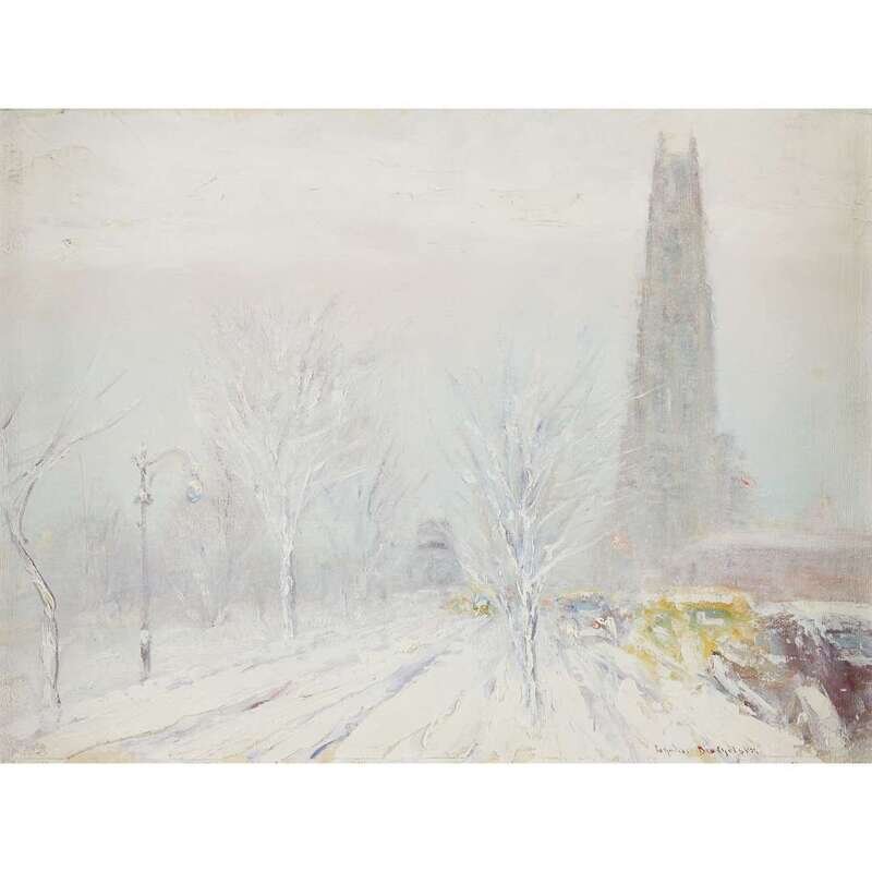 JOHANN BERTHELSEN (AMERICAN 1883-1972) "RIVERSIDE CHURCH, LOOKING NORTH ON RIVERSIDE DRIVE"