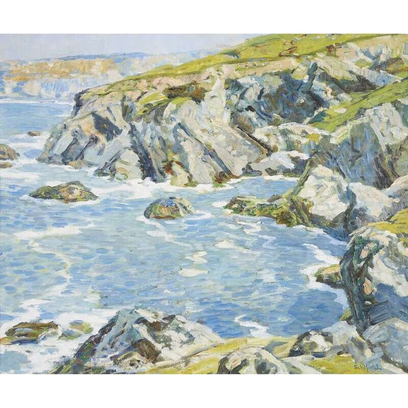 WALTER ELMER SCHOFIELD (AMERICAN 1867-1944) "WOOD'S COVE, LAGUNA BEACH" OR "THE LITTLE COVE, LAGUNA BEACH"