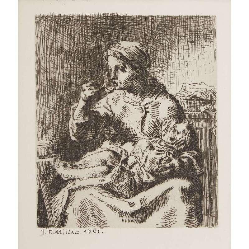 JEAN-FRANÇOIS MILLETBERTHE MORISOTMAURICE DENIS (FRENCH 1814-1875)(FRENCH 1841-1895)(FRENCH 1879-1943) "LA BOUILLIE""JEUNE FEMME AU REPOS""LA VISITATION"