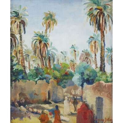 SUSANNE DELBAYS (CONTINENTAL 19TH CENTURY) VILLAGE NEAR A PALM GROVE