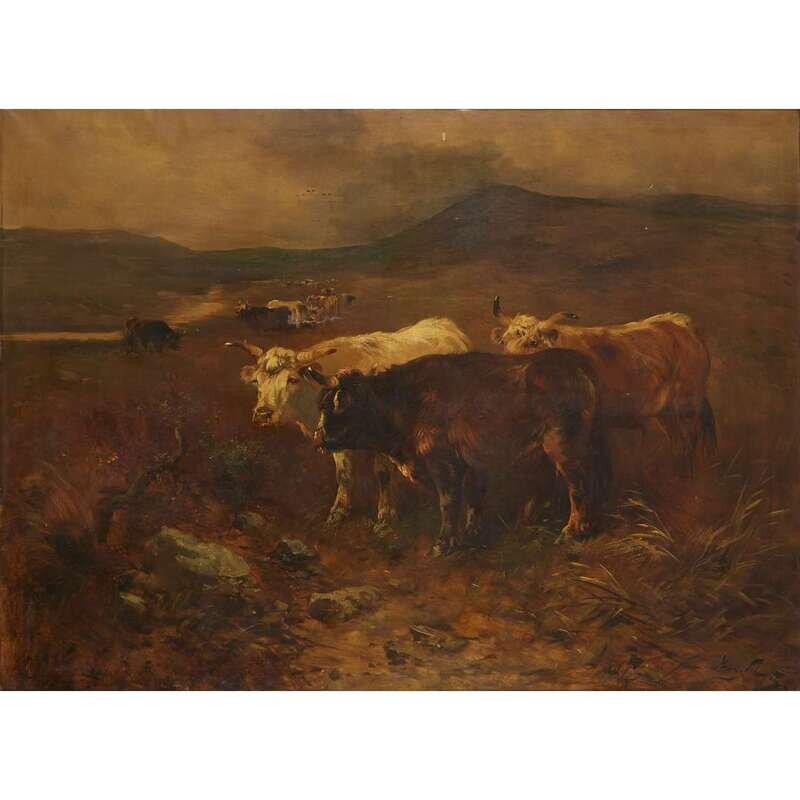 HENRY SCHOUTEN (BELGIAN 1864-1927) COWS IN A FIELD