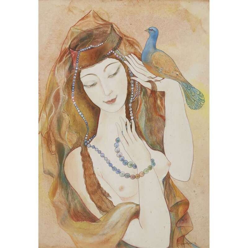 LADO (VLADIMIR DAVIDOVICH) GUDIASHVILI (GEORGIAN 1896-1980) EXOTIC WOMAN WITH PEACOCK