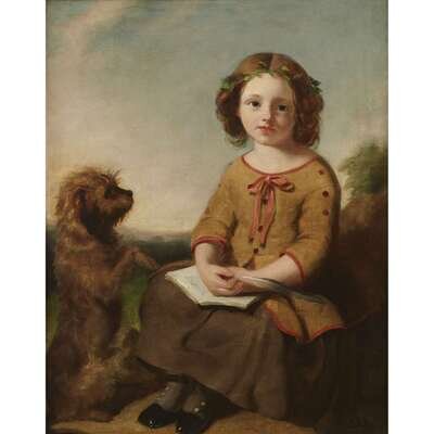 RICHARD ANSDELL (BRITISH 1815-1885) YOUNG GIRL AND HER TERRIER IN A LANDSCAPE