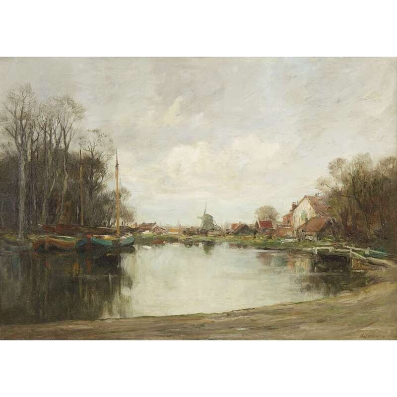 CHARLES PAUL GRUPPE (CANADIAN 1860-1940) DUTCH LANDSCAPE WITH WINDMILL