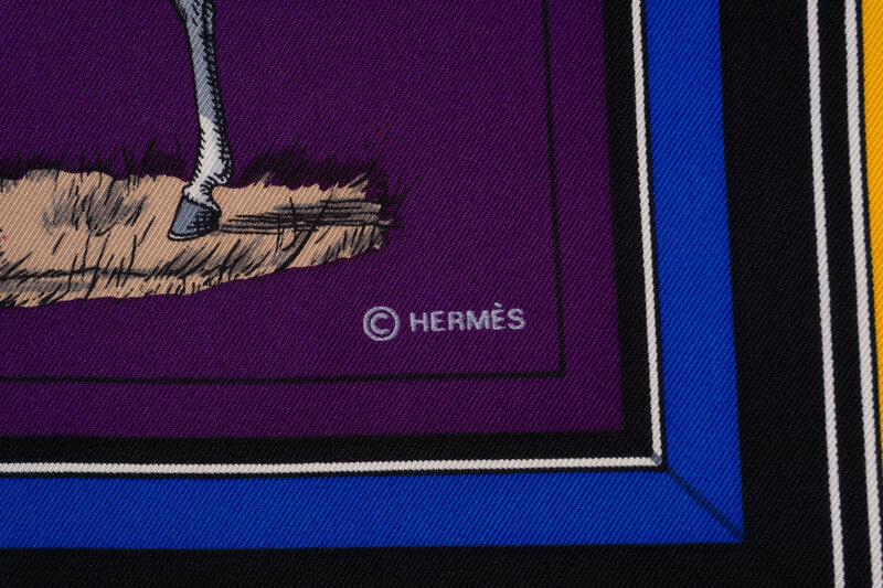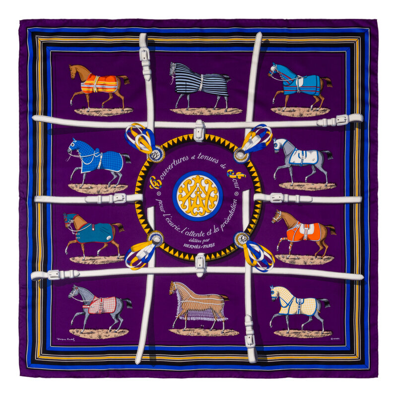 "Couvertures et Tenues de Jour" Scarf 90 in Printed Silk Twill with Rolled and Hand-Stitched Edges.