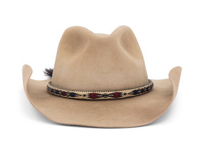 Western-style cowboy hat in beaver felt with braided rope embellishment.