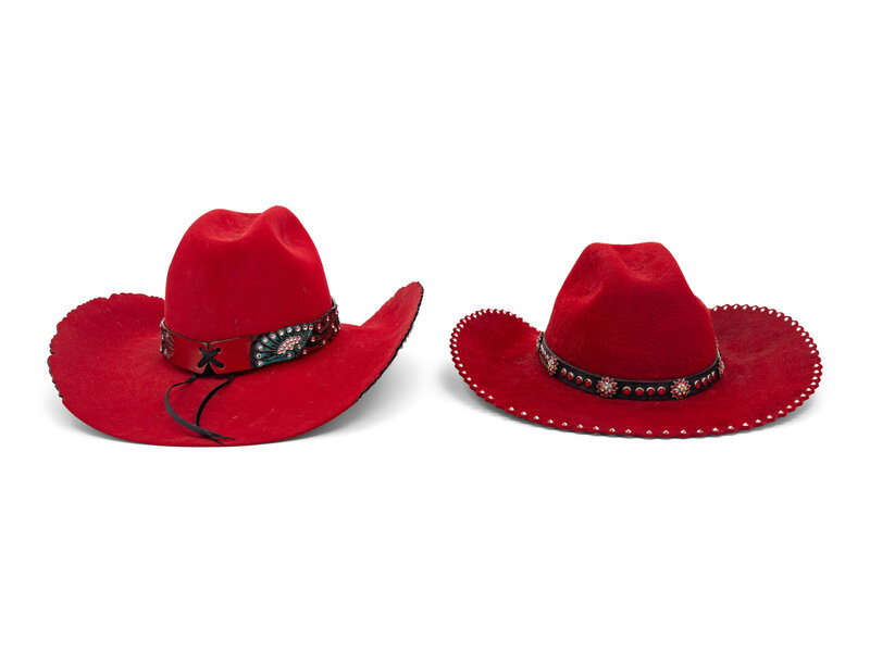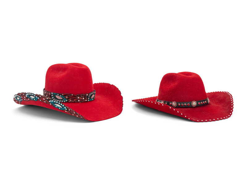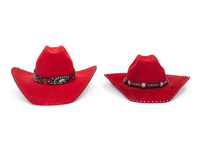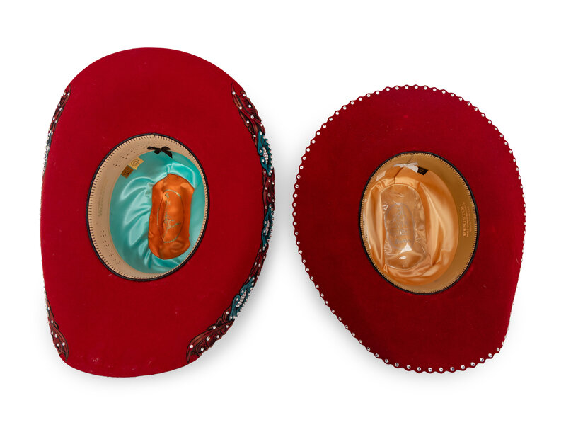 Two Red Western Hats and Hat Case