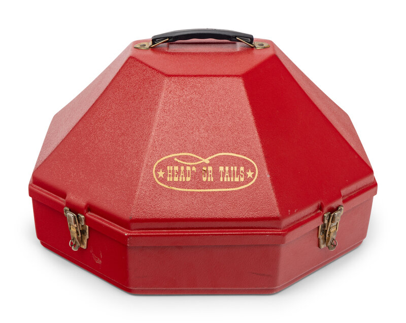 Includes a red "Heads or Tails" hat case with top-handle.