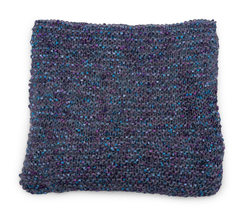 Hand-knitted, rectangular scarf in multicolor wool blend. Knitted by Madeleine Albright.