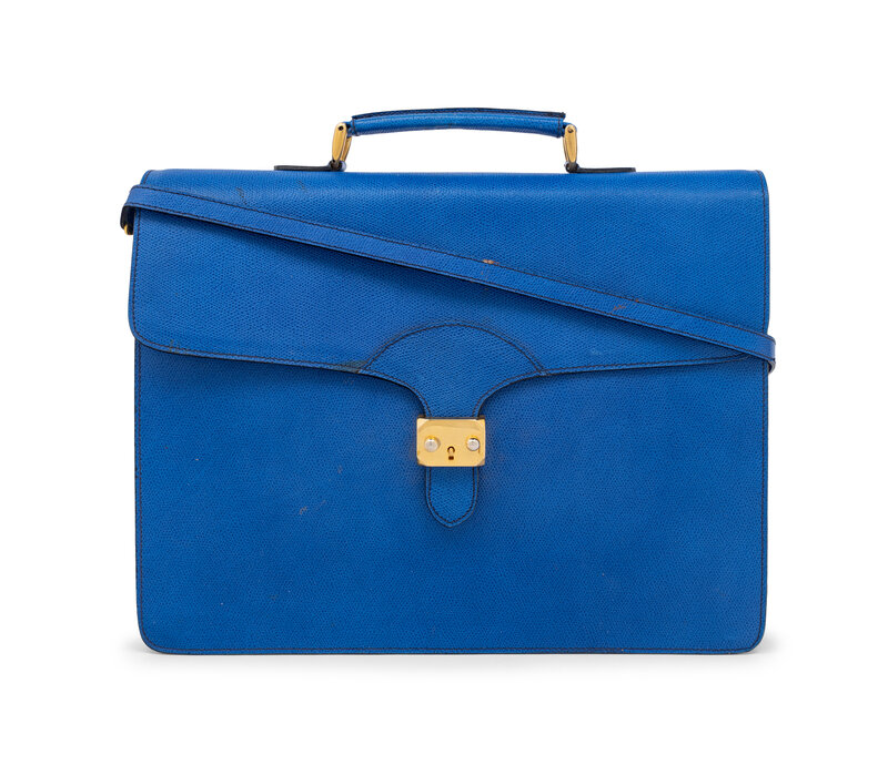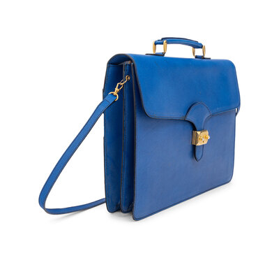 Bascora Top-Handle Briefcase in Blue Crossgrain Leather with Gold-Tone Hardware and Detachable Shoulder Strap