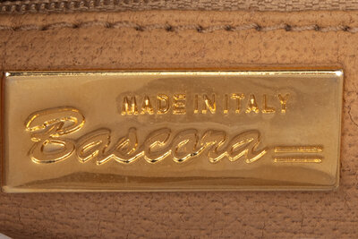 Additional Information: Gold-tone hardware; flap closure; coated textile and nylon fabric lining; zippered interior sidewall pocket; two main interior compartments.