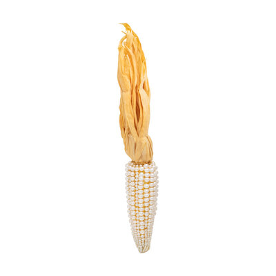 Designed by John Hatleberg, cultured pearls surmounted by natural corn husks. 18 karat yellow gold. 9 inches long.