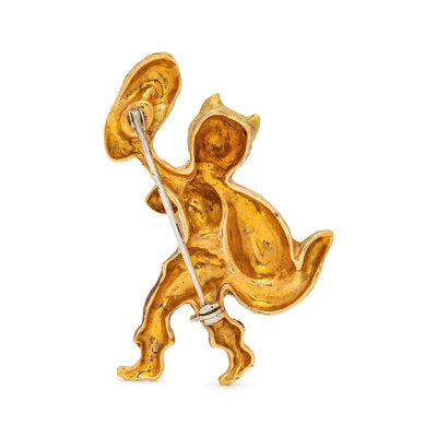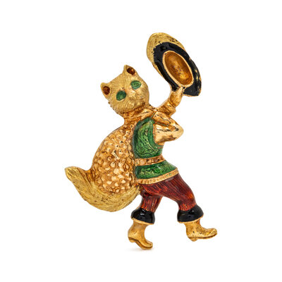 YELLOW GOLD AND ENAMEL PUSS IN BOOTS PIN