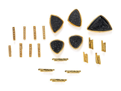 COLLECTION OF YELLOW GOLD DRUZY SLIDES AND SPACERS