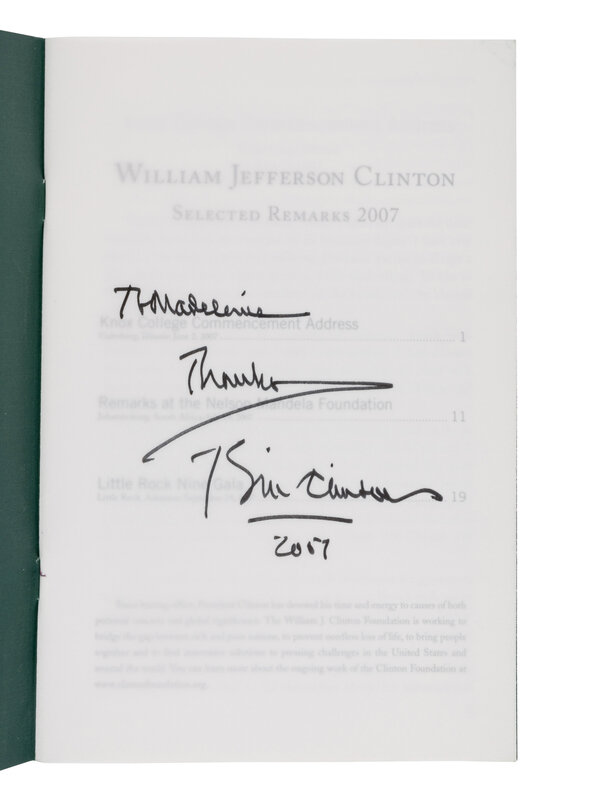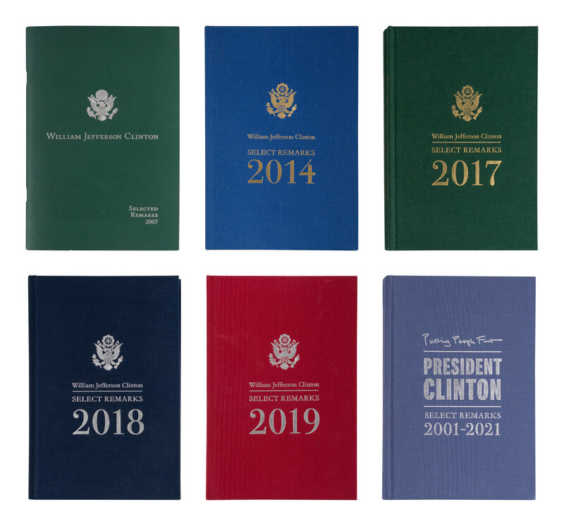 CLINTON, William. Selected Remarks. 7 volumes, various dates. FIRST EDITIONS. Two are INSCRIBED BY PRESIDENT BILL CLINTON.