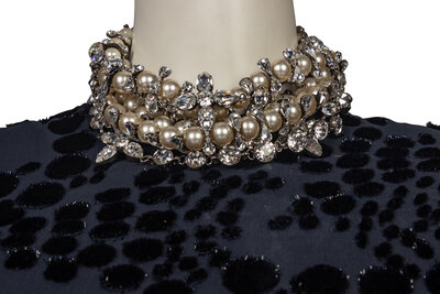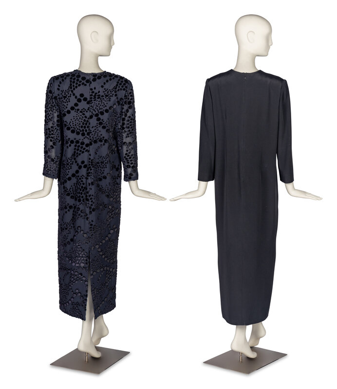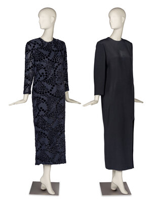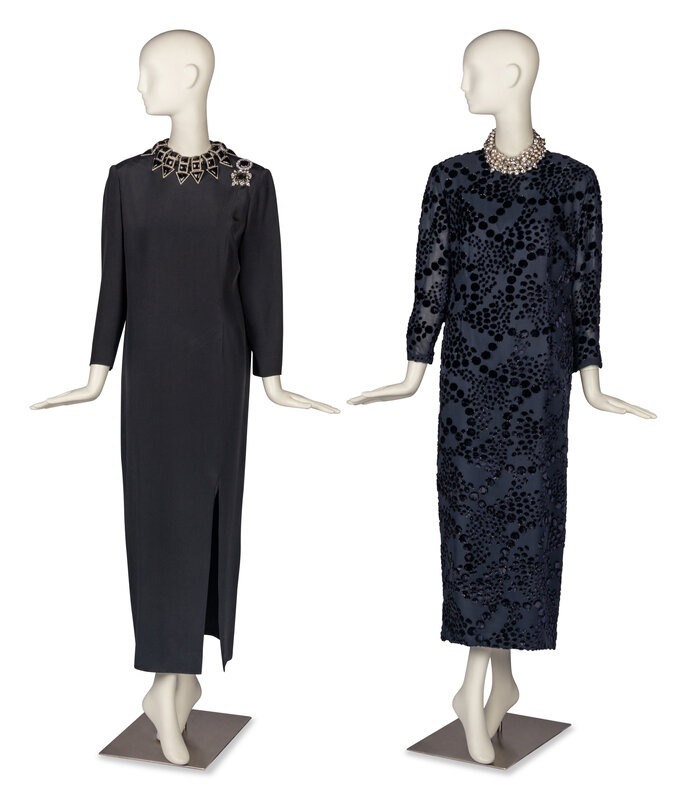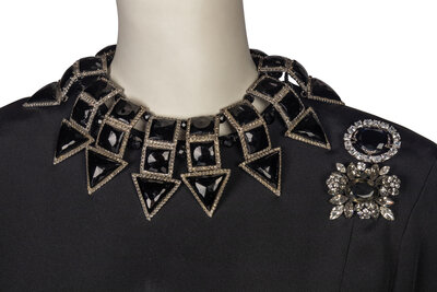 Two Designer Dresses with Two Brooches and Two Necklaces