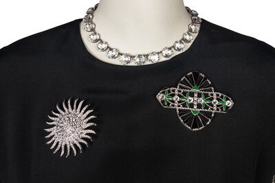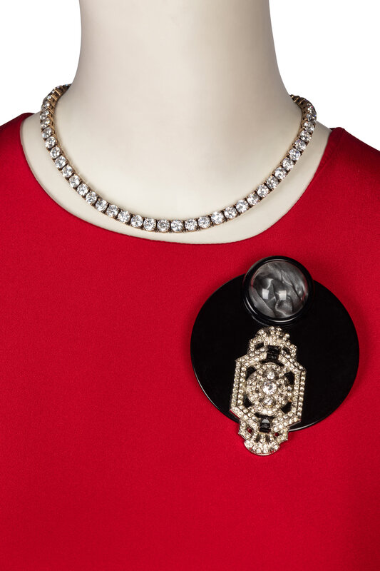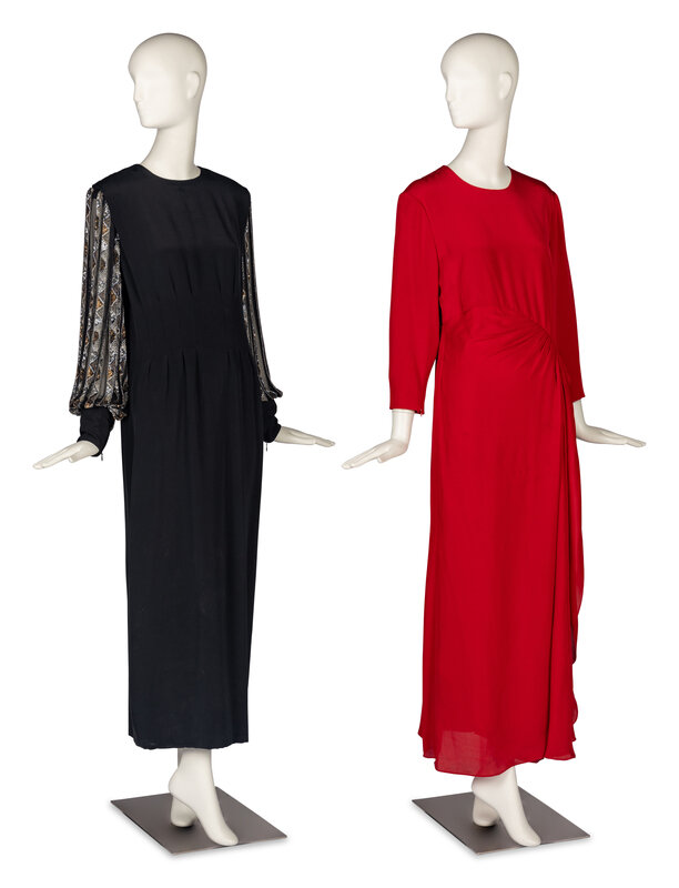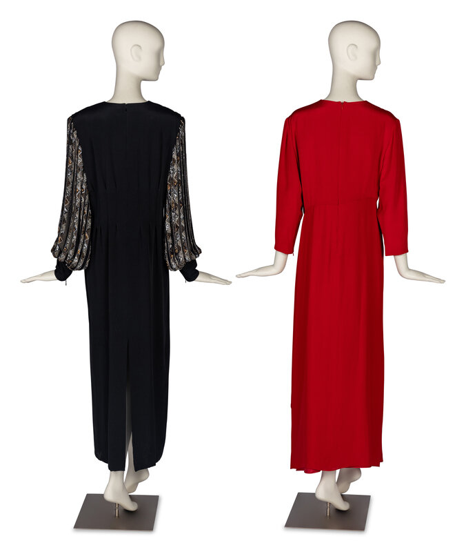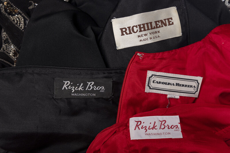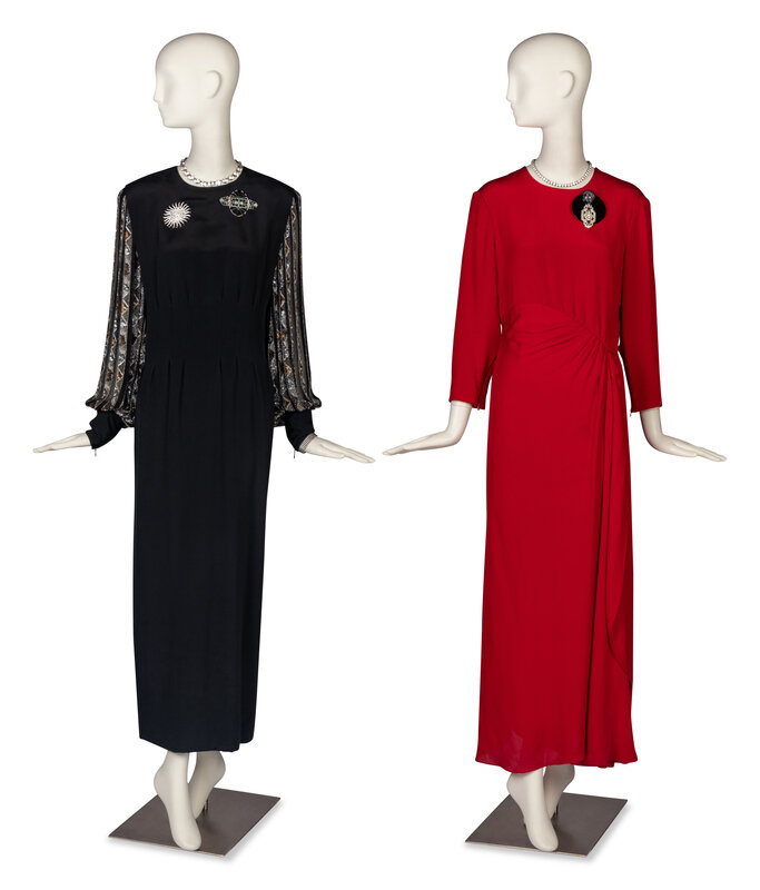 Two Gowns by Richilene and Carolina Herrera Accompanied by a Collection of Costume Jewelry