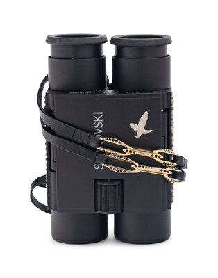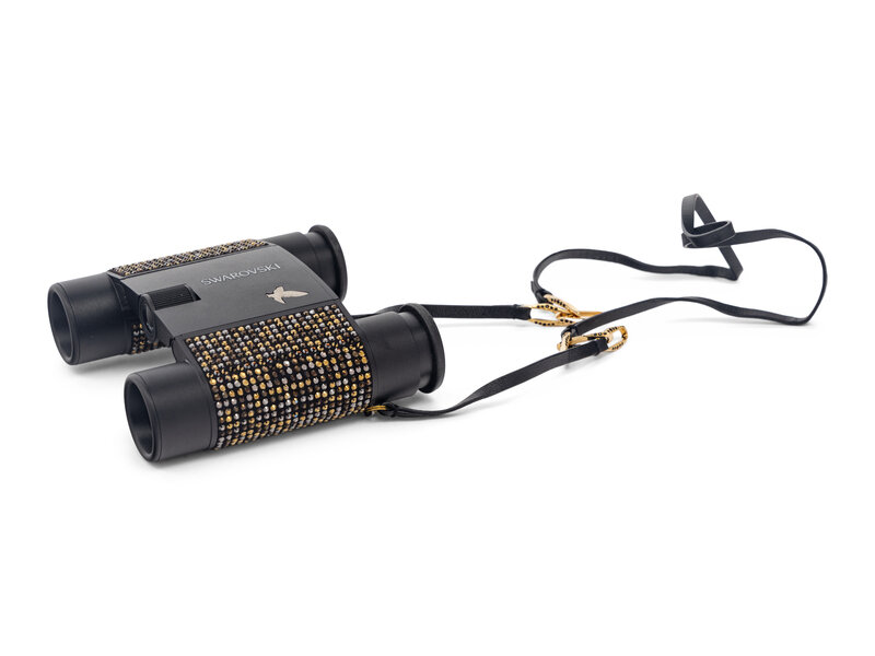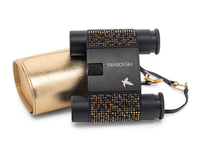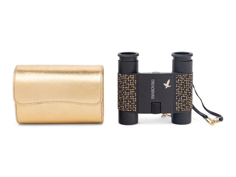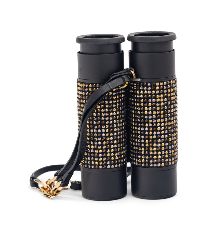 A Pair of Swarovski Crystal-Embellished Opera Glasses in Black Powder-Coated Metal with Case.