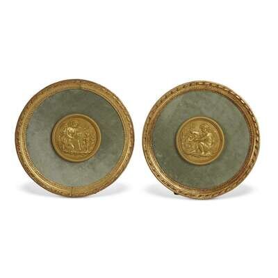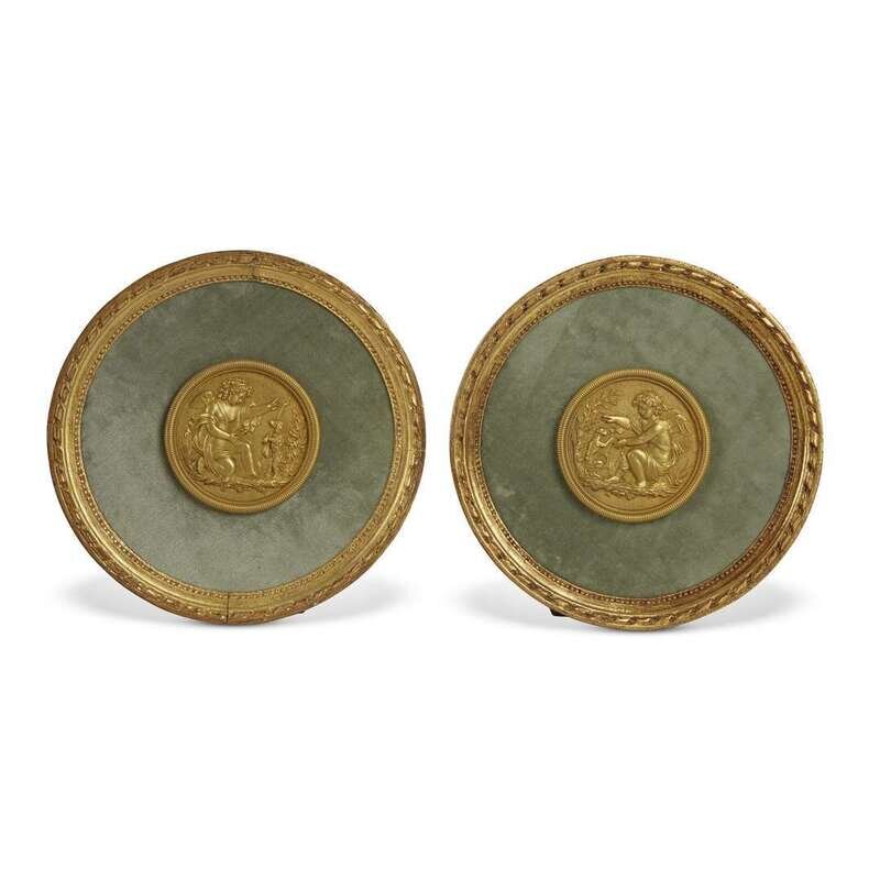 Two framed Louis XVI style giltmetal medallions in the manner of clodion, 20th century