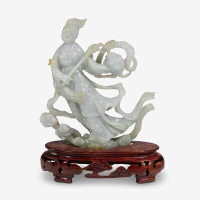 A Chinese jadeite figure of a lady holding a lantern 20th century