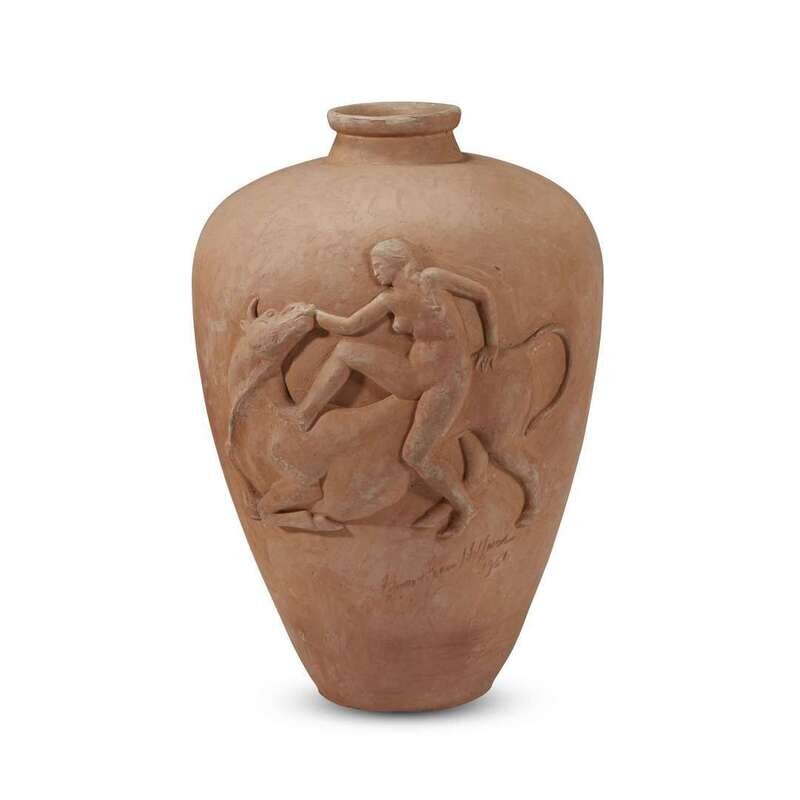 EDWARD FENNO HOFFMAN III (AMERICAN, 1916-1991) SCULPTED TERRACOTTA FLOOR VASE, 1956