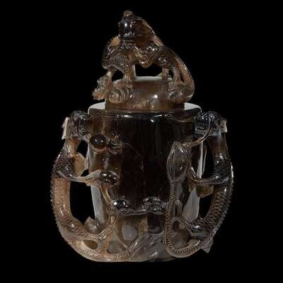 A large Chinese smokey quartz 'dragon and phoenix' vase and cover 20th century