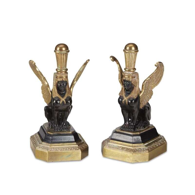 A pair of Empire style gilt and patinated bronze sphinx-form deskweights 20th century