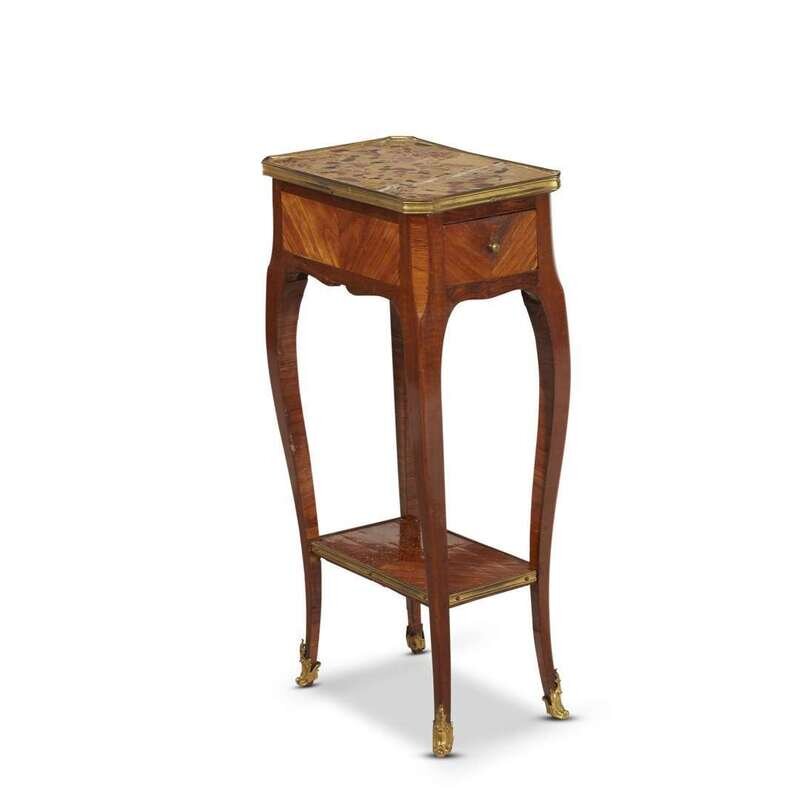 A Louis XV brass-mounted kingwood and mahogany parquetry stand mid 18th century