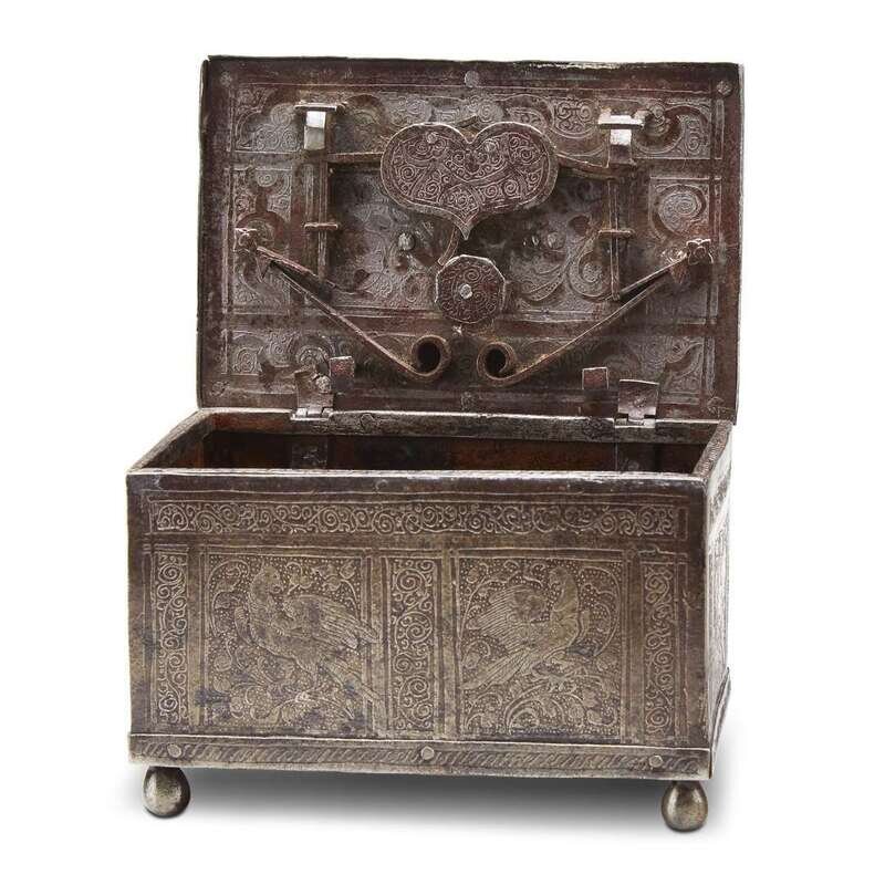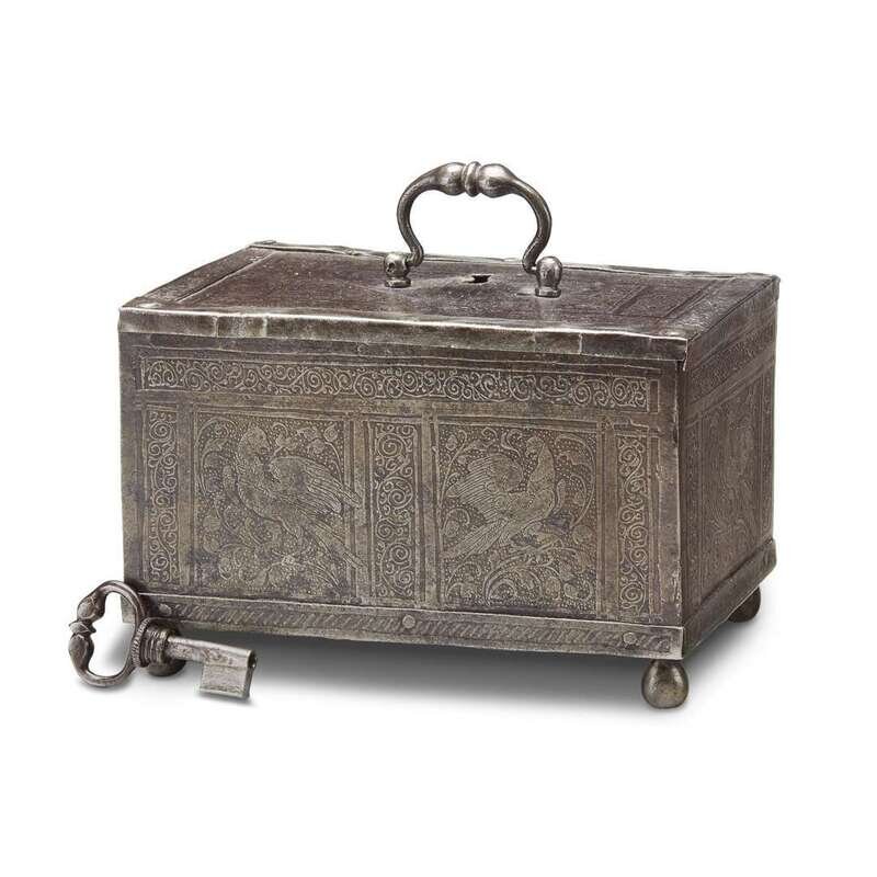 A German silvered iron strong box probably 18th century