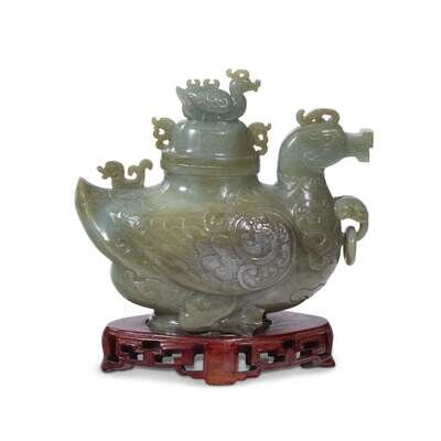 A Chinese carved hardstone 'mandarin duck' vase and cover