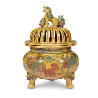 A Japanese enameled amber-glazed censer and cover late 19th century