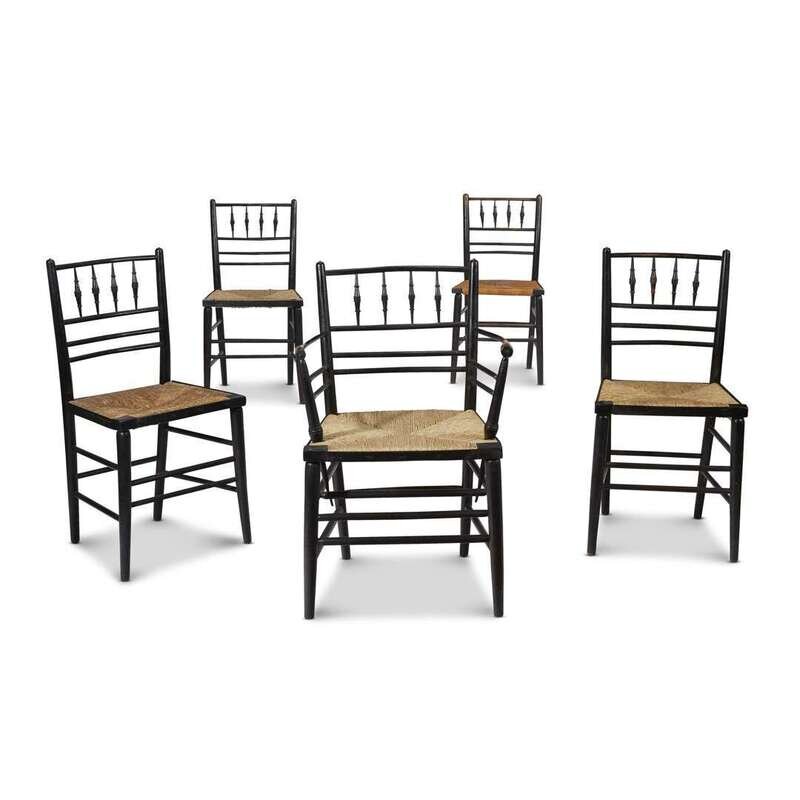 A set of five William Morris "Sussex" spindle-backed chairs Morris & Co., late 19th century