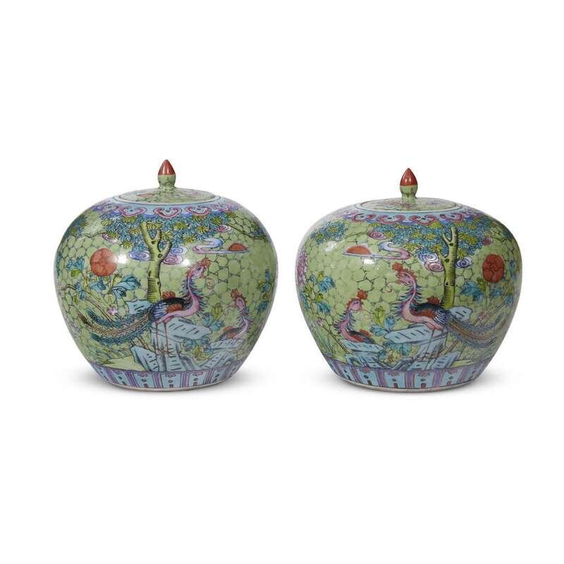A pair of famille verte covered ginger jars late 19th/early 20th century