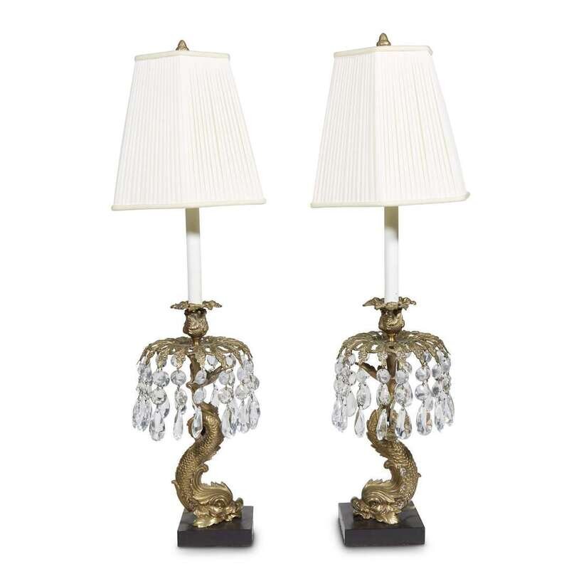 A pair of Rococo style giltmetal dolphin-form lamps 20th century