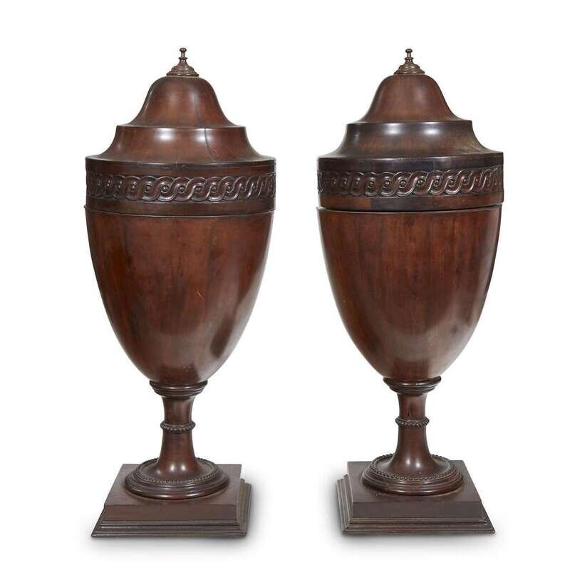 A pair of George III style mahogany urn-form knife boxes 19th century