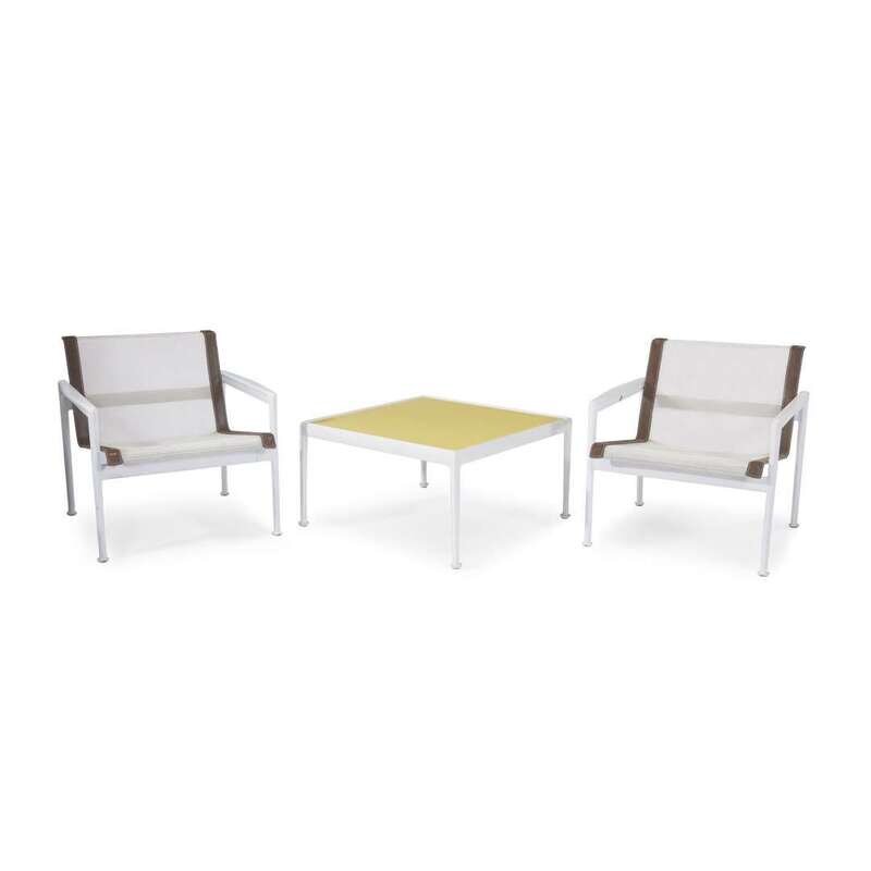 RICHARD SCHULTZ PAIR OF LEISURE COLLECTION CHAIRS AND SIDE TABLE, KNOLL ASSOCIATES,