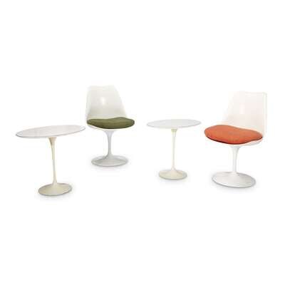 A pair of Eero Saarinen tulip chairs and side tables Knoll Associates, Inc., New York, NY, circa 1960s