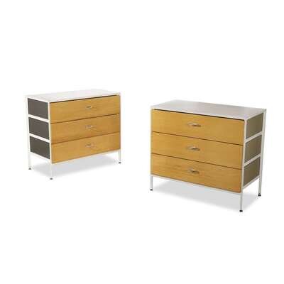 GEORGE NELSON & ASSOCIATES ASSOCIATED PAIR OF STEELFRAME THREE-DRAWER CHESTS