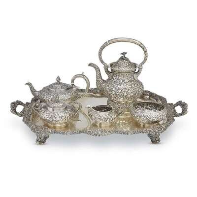 An assembled American sterling silver five-piece tea service kirk and various makers, 20th century