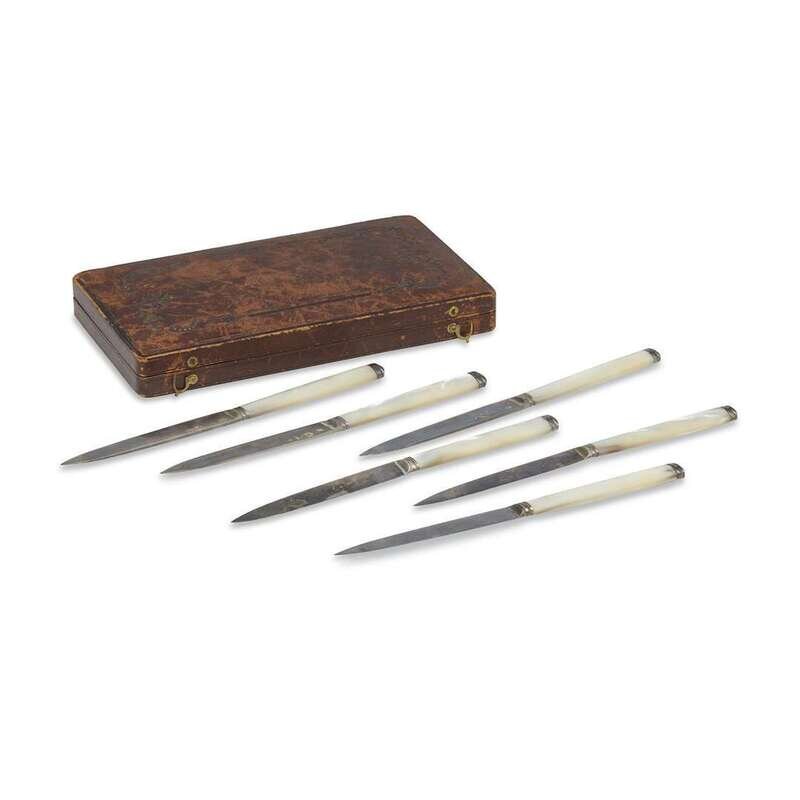 Set of six Louis XVI mother of pearl-handled silver knives Bearing the charge marks for Riom, and Aix or Lyon, France, 1775-1781