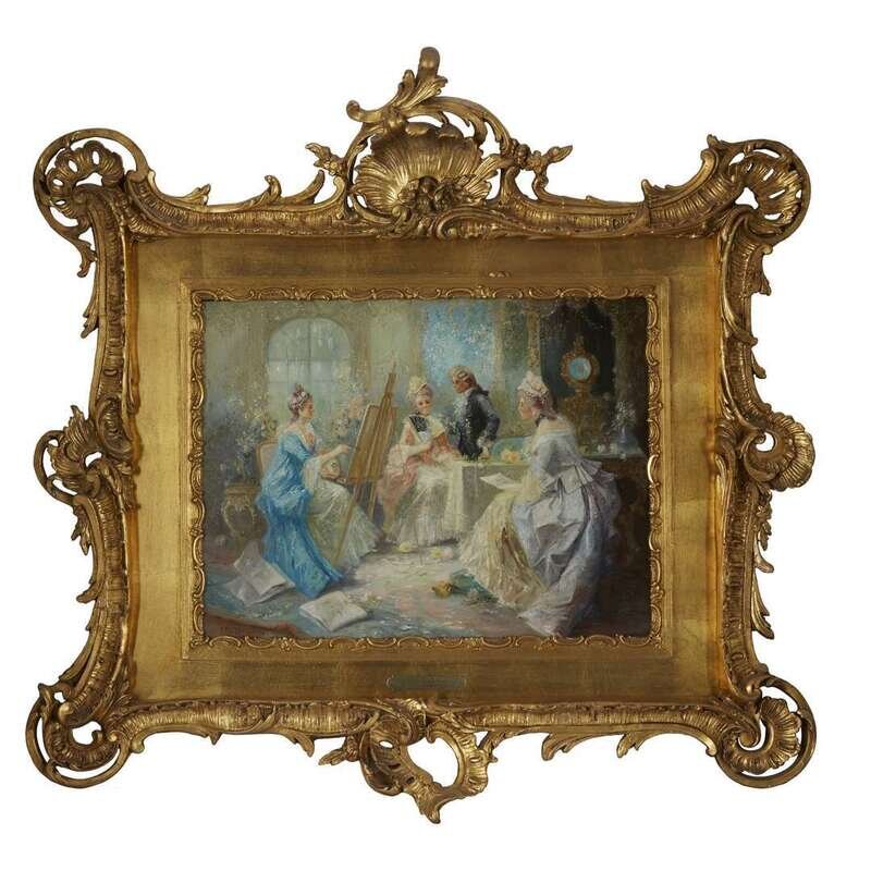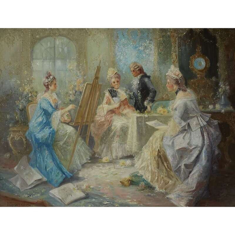 L. DORIES TEISER (CONTINENTAL 19TH CENTURY) "A VISIT IN THE STUDIO"