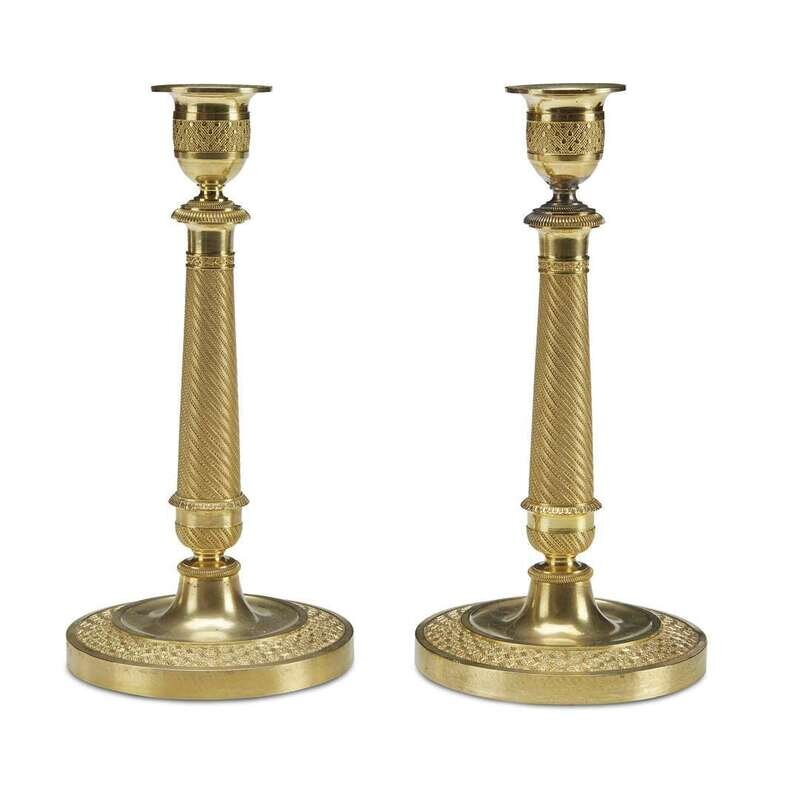 A pair of French gilt-bronze engine-turned candlesticks early 20th century