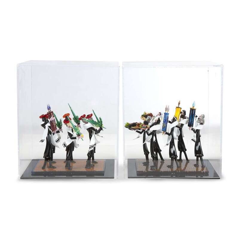 GIANNI TOSO (ITALIAN, B. 1942) TWO GLASS RABBI GROUPS, CIRCA 1980S