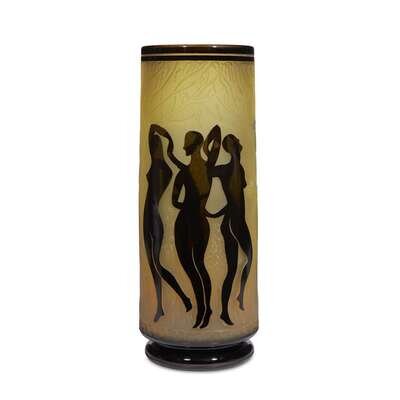 DUNCAN MCCLELLAN (AMERICAN B. 1955) ACID-ETCHED CAMEO GLASS VASE WITH DANCING NUDES, CIRCA 2000