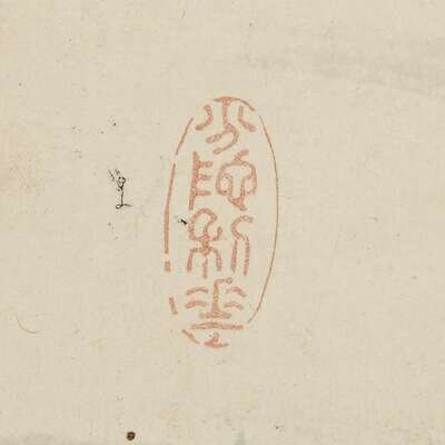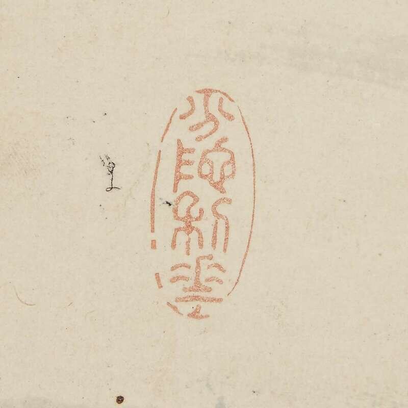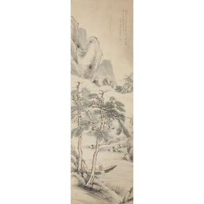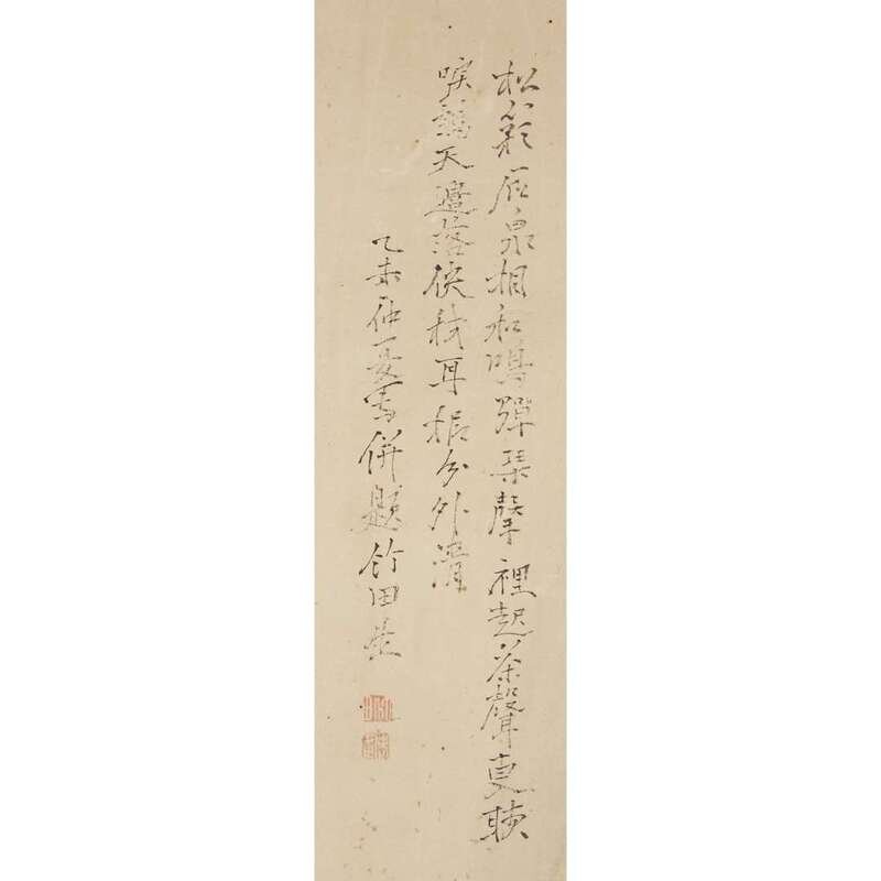 Ink and color on paper, inscribed and with two seals upper right, another lower left, mounted as a hanging scroll. sight H: 52 1/4 in., 132.7cm; 16 3/8 in., 41.6cm