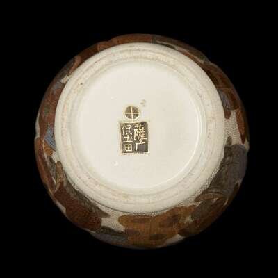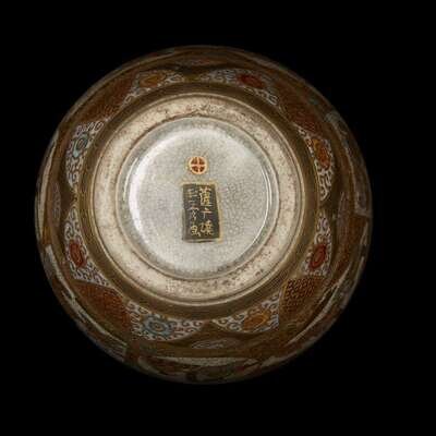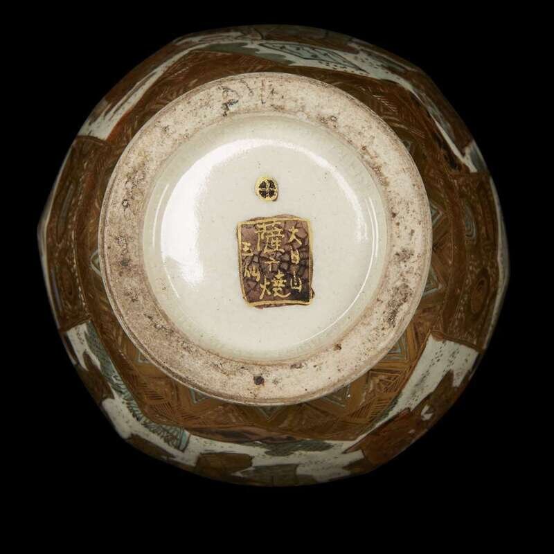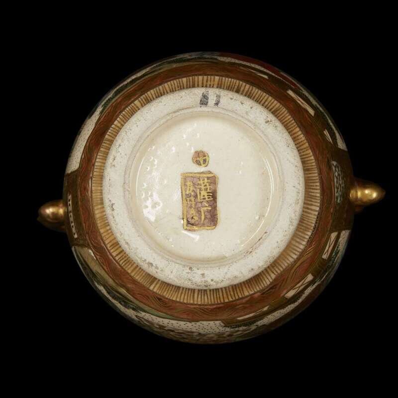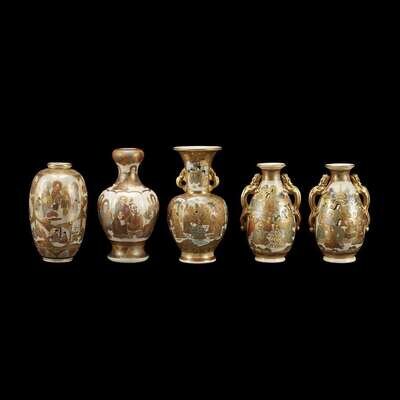 Comprising a pair of ovoid vases with dragon handles; another vase with handles; an ovoid vase; and a vase with "garlic-bulb" mouth. All signed on underside.