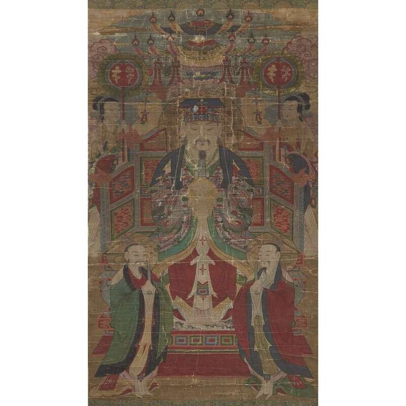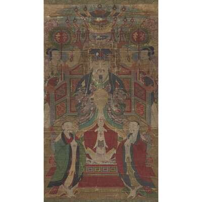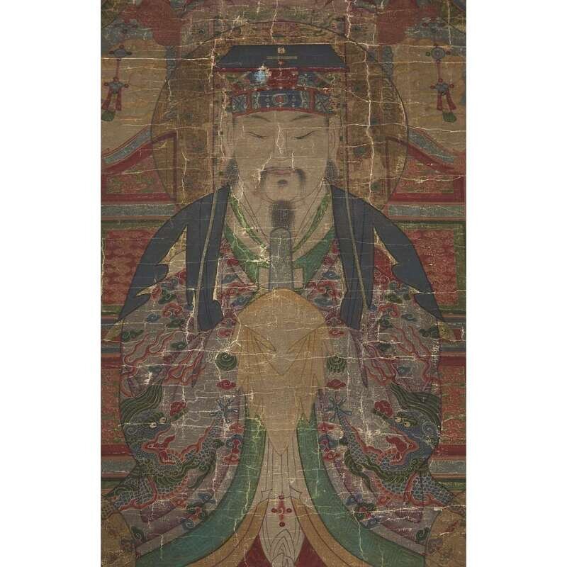 KOREAN SCHOOL 18TH/19TH CENTURY SEATED CELESTIAL DIGNITARY WITH ATTENDANTS